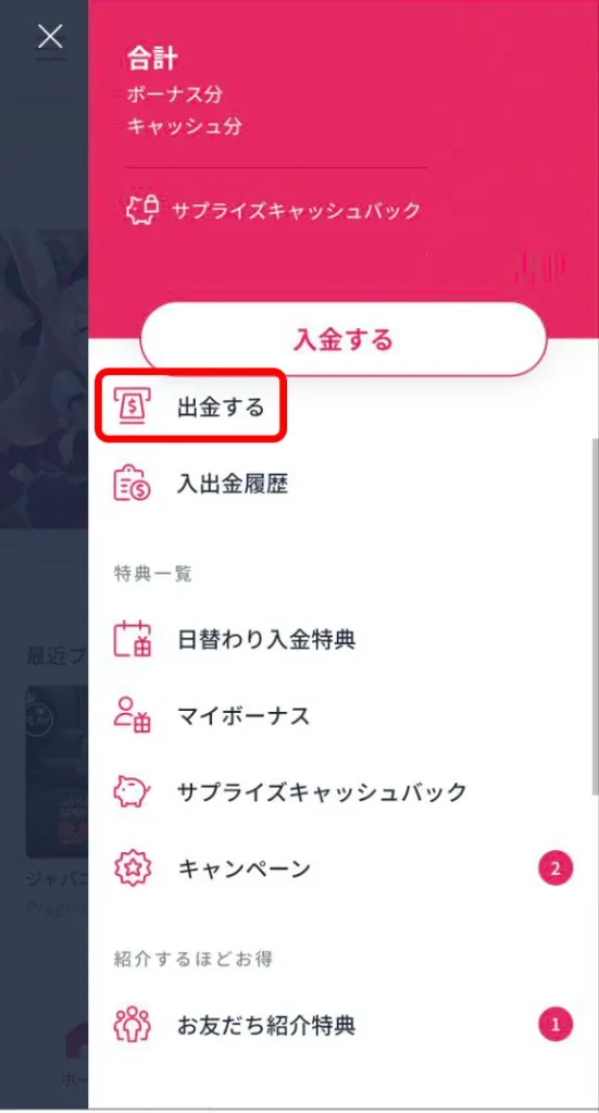 新ミスティーノでは基本的に入金時と同じ方法で出金します。
