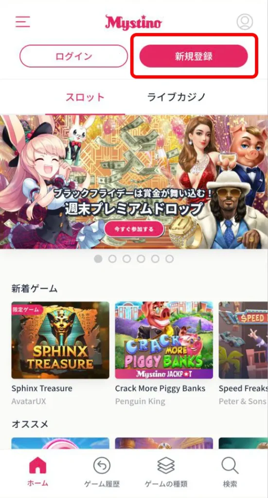 当サイトから新ミスティーノに登録して、お得なボーナスを獲得しましょう。